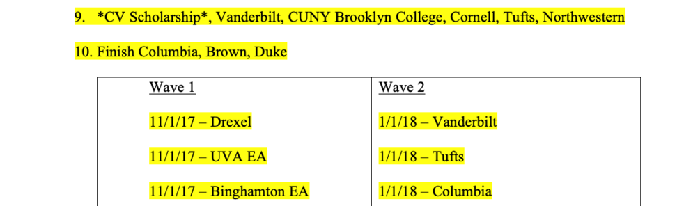 These are the planning materials I used to submit college applications to 16 different schools. Using these planning documents as a reference, I received offers from half of all the schools I applied to while gaining admission into my dream program at Brown University's PLME.